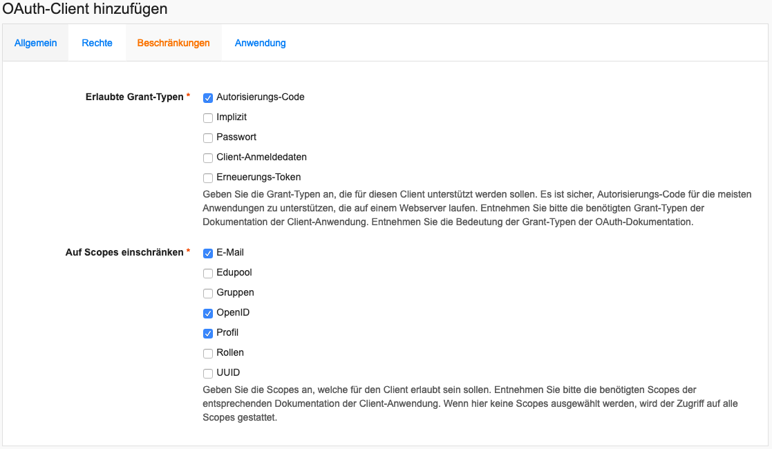 Unter "Beschränkungen" sind keine Änderungen nötig, hier können die Voreinstellungen beibehalten werden.